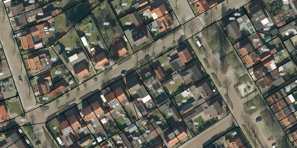 Het perceel waarop Schoolstraat 15 staat heeft een oppervlakte van 318 m². Dit is een groot perceel. De perceeloppervlakte wordt geregistreerd door het Kadaster. Gedetailleerde informatie over de maten van dit perceel kunt u vinden in het rapport Kadastrale kaart met maatvoering van Schoolstraat 15.