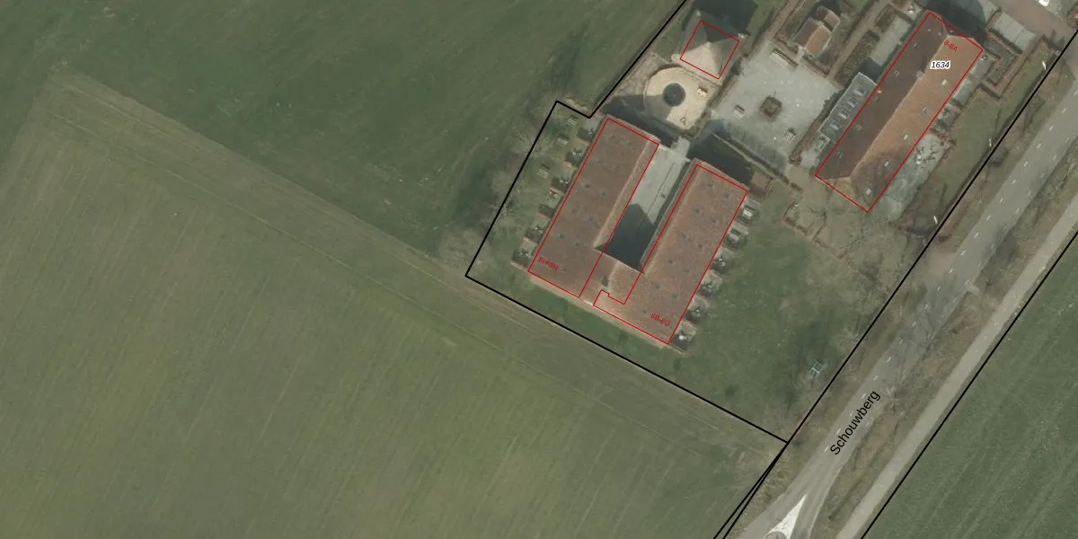 Het perceel waarop Schouwberg 8-H staat heeft een oppervlakte van 6699 m². Dit is een zeer groot perceel. De perceeloppervlakte wordt geregistreerd door het Kadaster. Gedetailleerde informatie over de maten van dit perceel kunt u vinden in het rapport Kadastrale kaart met maatvoering van Schouwberg 8-H.