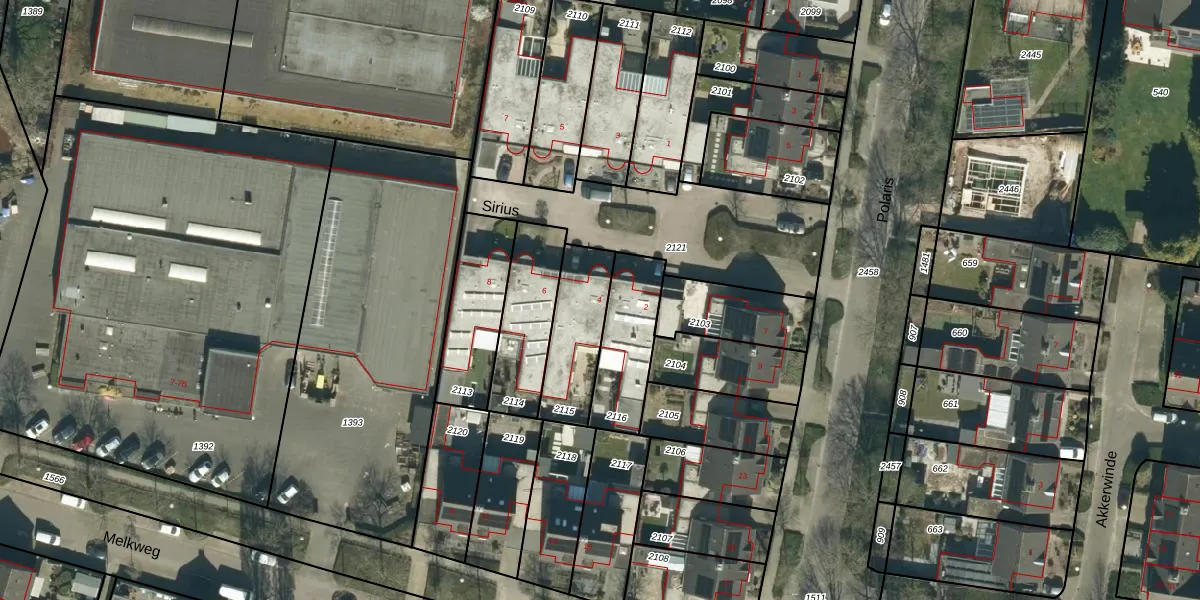 Gebruik de zoekbalk of klik op een perceel voor informatie over de adressen binnen dit perceel.