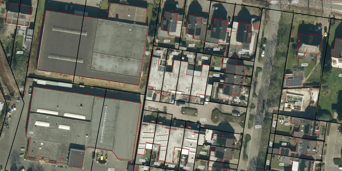 Sirius 5 is gelegen op kadastraal perceel HGL04F2110. Deze kadastrale aanduiding is uniek en wordt gebruikt door het Kadaster om eigendomsrechten en andere zakelijke rechten vast te leggen. Het perceel maakt onderdeel uit van de kadastrale gemeente Hoogeloon.