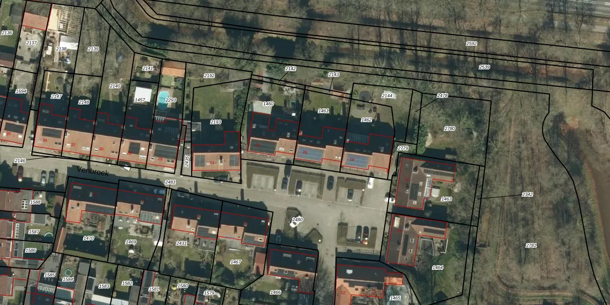 Het perceel waarop Venbroek 20 staat heeft een oppervlakte van 381 m². Dit is een groot perceel. De perceeloppervlakte wordt geregistreerd door het Kadaster. Gedetailleerde informatie over de maten van dit perceel kunt u vinden in het rapport Kadastrale kaart met maatvoering van Venbroek 20.