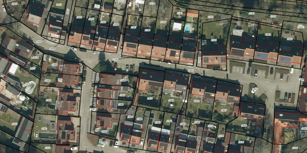 Het perceel waarop Venbroek 9 staat heeft een oppervlakte van 447 m². Dit is een groot perceel. De perceeloppervlakte wordt geregistreerd door het Kadaster. Gedetailleerde informatie over de maten van dit perceel kunt u vinden in het rapport Kadastrale kaart met maatvoering van Venbroek 9.