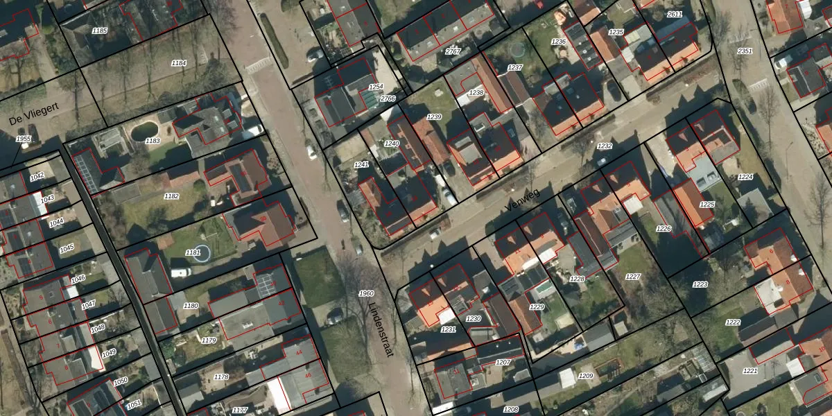 Het perceel waarop Venweg 14 staat heeft een oppervlakte van 330 m². Dit is een groot perceel. De perceeloppervlakte wordt geregistreerd door het Kadaster. Gedetailleerde informatie over de maten van dit perceel kunt u vinden in het rapport Kadastrale kaart met maatvoering van Venweg 14.