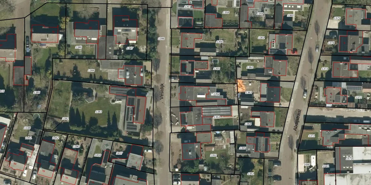 Het perceel waarop Vestdijk 6 staat heeft een oppervlakte van 447 m². Dit is een groot perceel. De perceeloppervlakte wordt geregistreerd door het Kadaster. Gedetailleerde informatie over de maten van dit perceel kunt u vinden in het rapport Kadastrale kaart met maatvoering van Vestdijk 6.