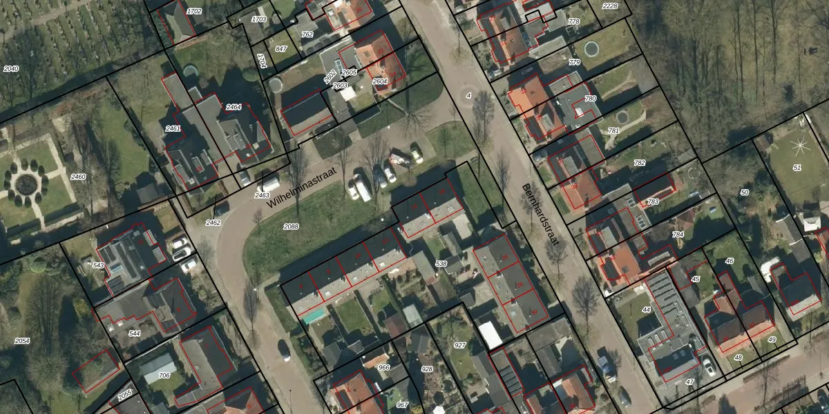 Het perceel waarop Wilhelminastraat 14 staat heeft een oppervlakte van 1735 m². Dit is een zeer groot perceel. De perceeloppervlakte wordt geregistreerd door het Kadaster. Gedetailleerde informatie over de maten van dit perceel kunt u vinden in het rapport Kadastrale kaart met maatvoering van Wilhelminastraat 14.