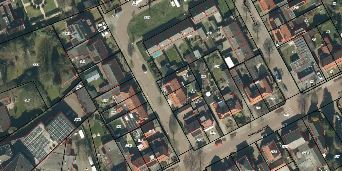 Gebruik de zoekbalk of klik op een perceel voor informatie over de adressen binnen dit perceel.