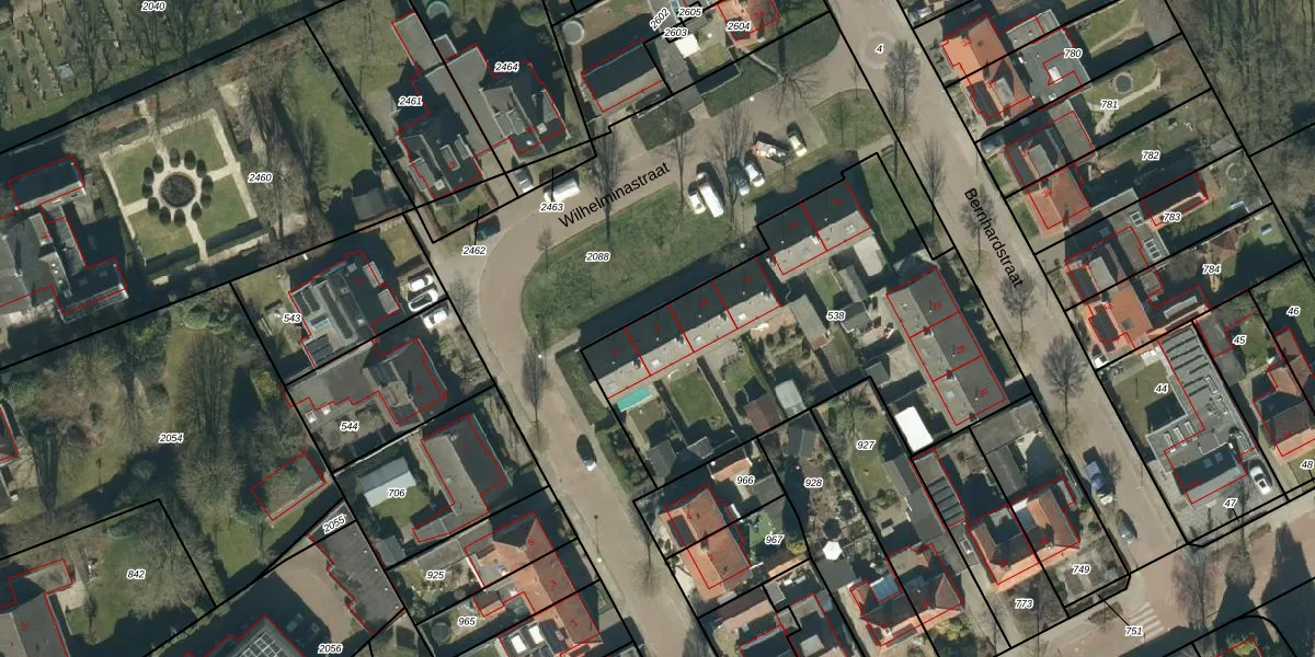 Het perceel waarop Wilhelminastraat 8 staat heeft een oppervlakte van 1735 m². Dit is een zeer groot perceel. De perceeloppervlakte wordt geregistreerd door het Kadaster. Gedetailleerde informatie over de maten van dit perceel kunt u vinden in het rapport Kadastrale kaart met maatvoering van Wilhelminastraat 8.