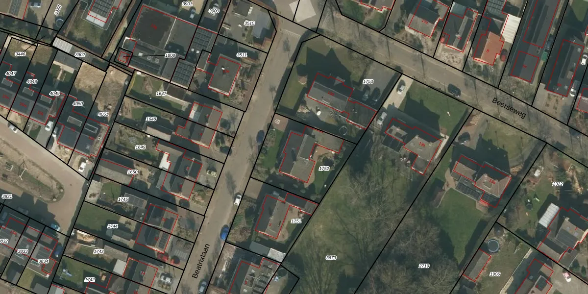 Het perceel waarop Beatrixlaan 1 staat heeft een oppervlakte van 652 m². Dit is een groot perceel. De perceeloppervlakte wordt geregistreerd door het Kadaster. Gedetailleerde informatie over de maten van dit perceel kunt u vinden in het rapport Kadastrale kaart met maatvoering van Beatrixlaan 1.