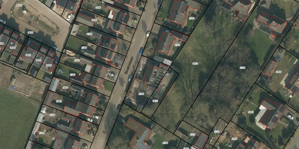 Beatrixlaan 5 is gelegen op kadastraal perceel CUI00L1750. Deze kadastrale aanduiding is uniek en wordt gebruikt door het Kadaster om eigendomsrechten en andere zakelijke rechten vast te leggen. Het perceel maakt onderdeel uit van de kadastrale gemeente Cuijk.