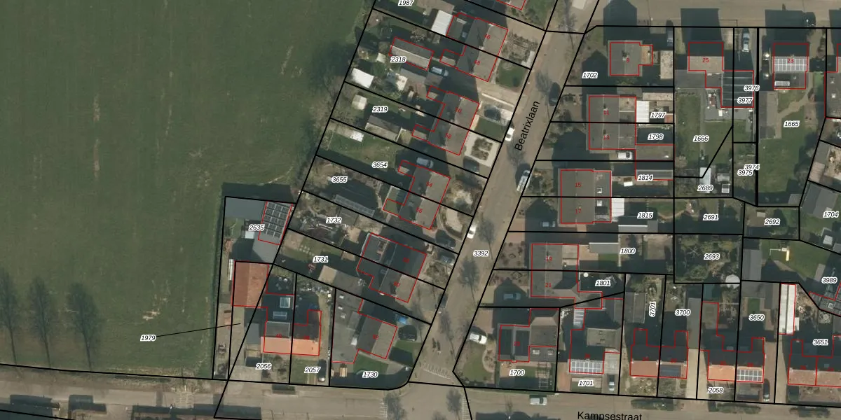 Beatrixlaan 56 is gelegen op kadastraal perceel CUI00L3655. Deze kadastrale aanduiding is uniek en wordt gebruikt door het Kadaster om eigendomsrechten en andere zakelijke rechten vast te leggen. Het perceel maakt onderdeel uit van de kadastrale gemeente Cuijk.
