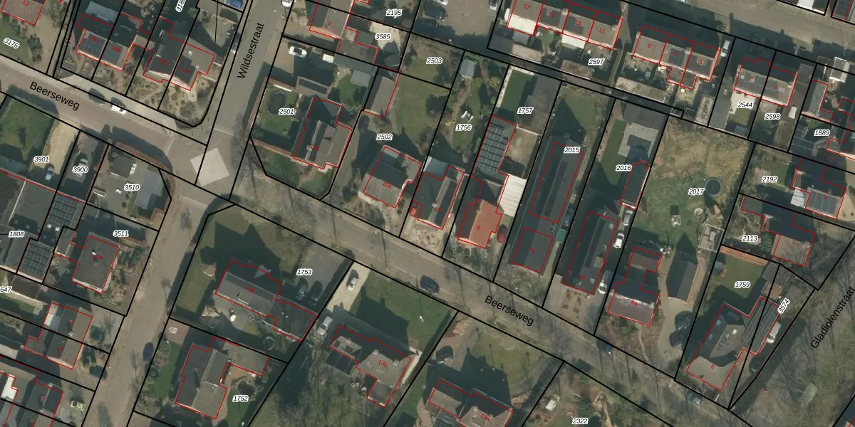 Gebruik de zoekbalk of klik op een perceel voor informatie over de adressen binnen dit perceel.
