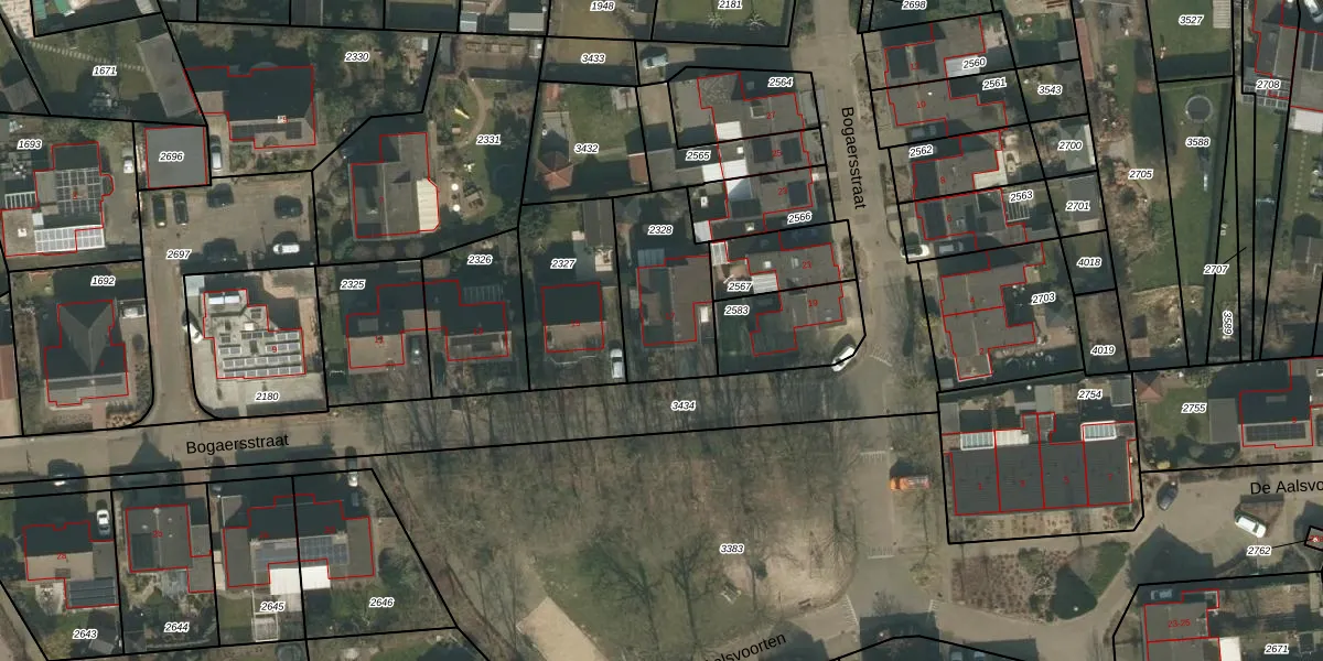 Bogaersstraat 17 is gelegen op kadastraal perceel CUI00L2328. Deze kadastrale aanduiding is uniek en wordt gebruikt door het Kadaster om eigendomsrechten en andere zakelijke rechten vast te leggen. Het perceel maakt onderdeel uit van de kadastrale gemeente Cuijk.