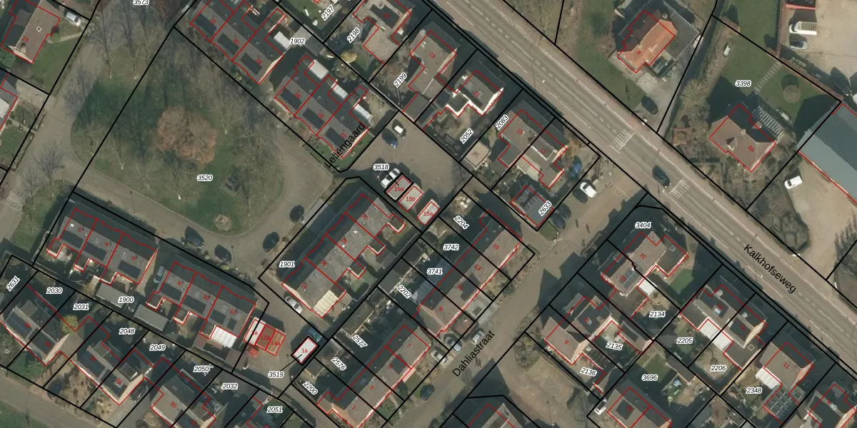 Het perceel waarop Dahliastraat 15-a staat heeft een oppervlakte van 2618 m². Dit is een zeer groot perceel. De perceeloppervlakte wordt geregistreerd door het Kadaster. Gedetailleerde informatie over de maten van dit perceel kunt u vinden in het rapport Kadastrale kaart met maatvoering van Dahliastraat 15-a.