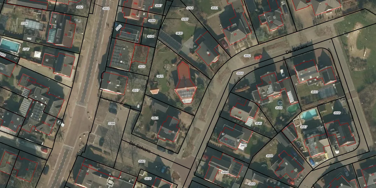 Het perceel waarop De Schans 19 staat heeft een oppervlakte van 800 m². Dit is een groot perceel. De perceeloppervlakte wordt geregistreerd door het Kadaster. Gedetailleerde informatie over de maten van dit perceel kunt u vinden in het rapport Kadastrale kaart met maatvoering van De Schans 19.