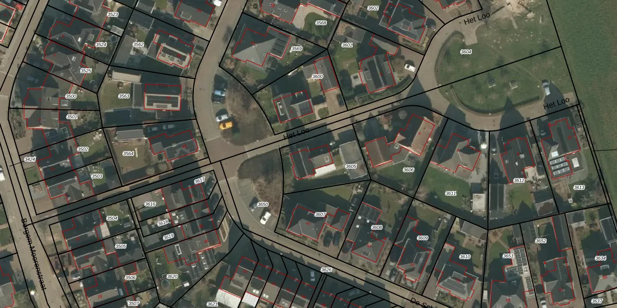 Het perceel waarop Het Loo 2 staat heeft een oppervlakte van 448 m². Dit is een groot perceel. De perceeloppervlakte wordt geregistreerd door het Kadaster. Gedetailleerde informatie over de maten van dit perceel kunt u vinden in het rapport Kadastrale kaart met maatvoering van Het Loo 2.