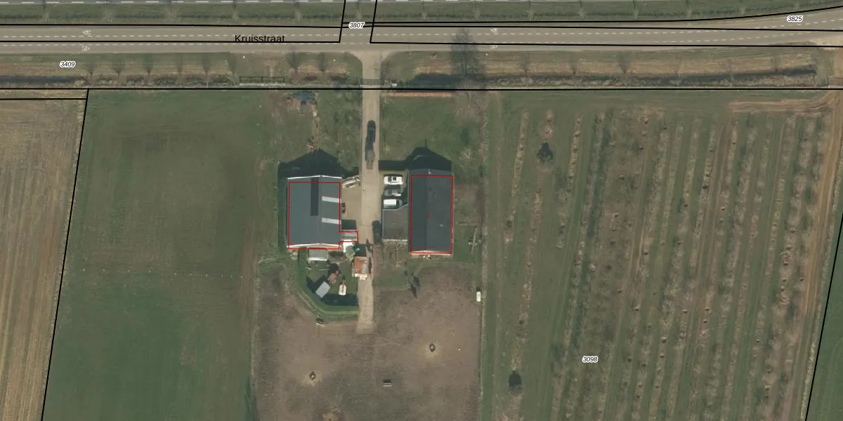 Het perceel waarop Kruisstraat 2 staat heeft een oppervlakte van 2,3 ha. Dit is een zeer groot perceel. De perceeloppervlakte wordt geregistreerd door het Kadaster. Gedetailleerde informatie over de maten van dit perceel kunt u vinden in het rapport Kadastrale kaart met maatvoering van Kruisstraat 2.