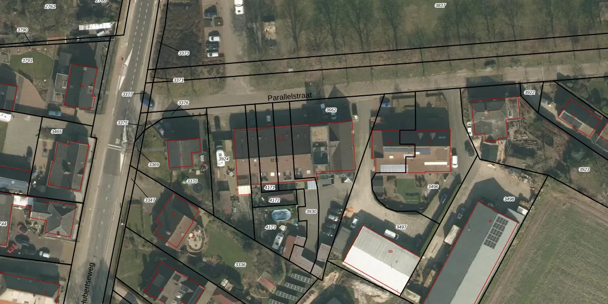 Parallelstraat 2-12 is gelegen op kadastraal perceel CUI00K3662. Deze kadastrale aanduiding is uniek en wordt gebruikt door het Kadaster om eigendomsrechten en andere zakelijke rechten vast te leggen. Het perceel maakt onderdeel uit van de kadastrale gemeente Cuijk.