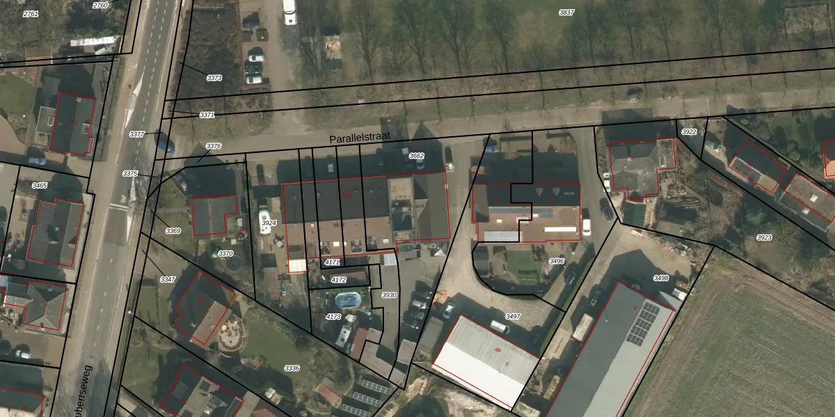 Parallelstraat 2-14 is gelegen op kadastraal perceel CUI00K3662. Deze kadastrale aanduiding is uniek en wordt gebruikt door het Kadaster om eigendomsrechten en andere zakelijke rechten vast te leggen. Het perceel maakt onderdeel uit van de kadastrale gemeente Cuijk.