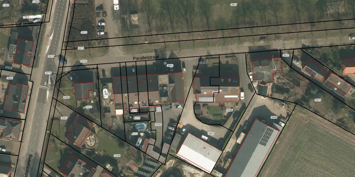Het perceel waarop Parallelstraat 2-15 staat heeft een oppervlakte van 900 m². Dit is een groot perceel. De perceeloppervlakte wordt geregistreerd door het Kadaster. Gedetailleerde informatie over de maten van dit perceel kunt u vinden in het rapport Kadastrale kaart met maatvoering van Parallelstraat 2-15.