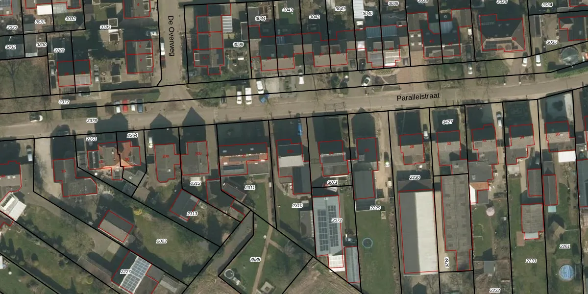 Parallelstraat 22-b is gelegen op kadastraal perceel CUI00K2310. Deze kadastrale aanduiding is uniek en wordt gebruikt door het Kadaster om eigendomsrechten en andere zakelijke rechten vast te leggen. Het perceel maakt onderdeel uit van de kadastrale gemeente Cuijk.