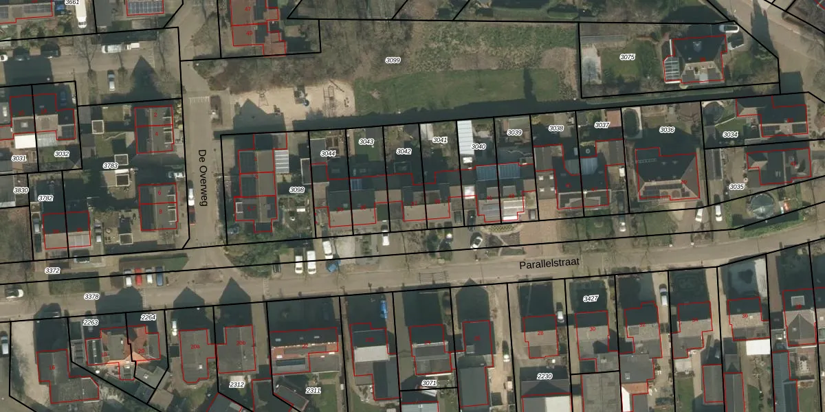 Parallelstraat 37 is gelegen op kadastraal perceel CUI00K3042. Deze kadastrale aanduiding is uniek en wordt gebruikt door het Kadaster om eigendomsrechten en andere zakelijke rechten vast te leggen. Het perceel maakt onderdeel uit van de kadastrale gemeente Cuijk.