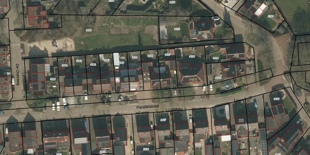 Gebruik de zoekbalk of klik op een perceel voor informatie over de adressen binnen dit perceel.