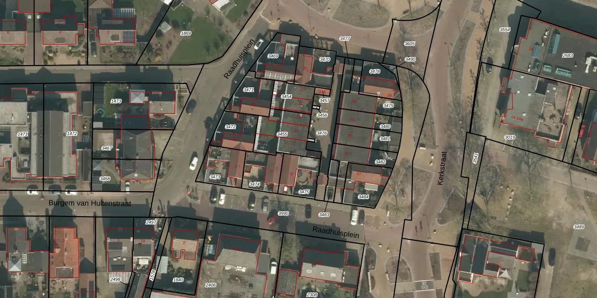 Raadhuisplein 7 is gelegen op kadastraal perceel CUI00L3455. Deze kadastrale aanduiding is uniek en wordt gebruikt door het Kadaster om eigendomsrechten en andere zakelijke rechten vast te leggen. Het perceel maakt onderdeel uit van de kadastrale gemeente Cuijk.