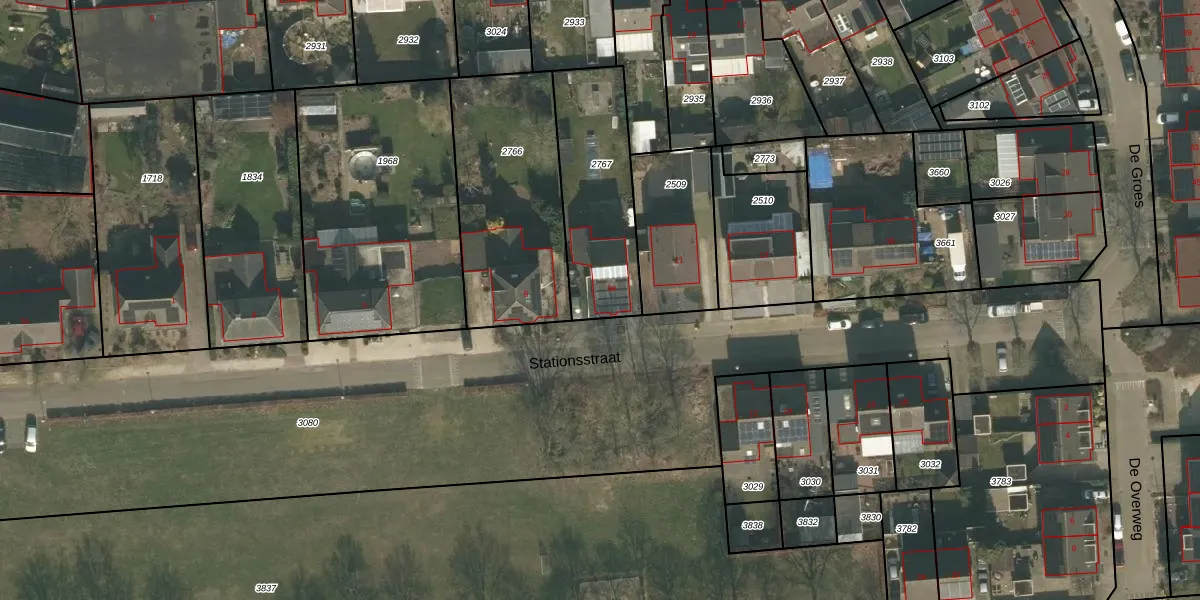 Het perceel waarop Stationsstraat 9-a staat heeft een oppervlakte van 510 m². Dit is een groot perceel. De perceeloppervlakte wordt geregistreerd door het Kadaster. Gedetailleerde informatie over de maten van dit perceel kunt u vinden in het rapport Kadastrale kaart met maatvoering van Stationsstraat 9-a.