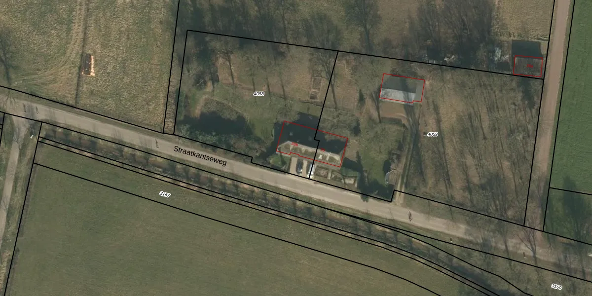 Straatkantseweg 28-b is gelegen op kadastraal perceel CUI00L4058. Deze kadastrale aanduiding is uniek en wordt gebruikt door het Kadaster om eigendomsrechten en andere zakelijke rechten vast te leggen. Het perceel maakt onderdeel uit van de kadastrale gemeente Cuijk.
