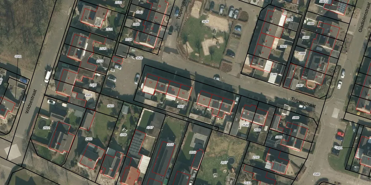 Tulpenstraat 11 is gelegen op kadastraal perceel CUI00L2597. Deze kadastrale aanduiding is uniek en wordt gebruikt door het Kadaster om eigendomsrechten en andere zakelijke rechten vast te leggen. Het perceel maakt onderdeel uit van de kadastrale gemeente Cuijk.