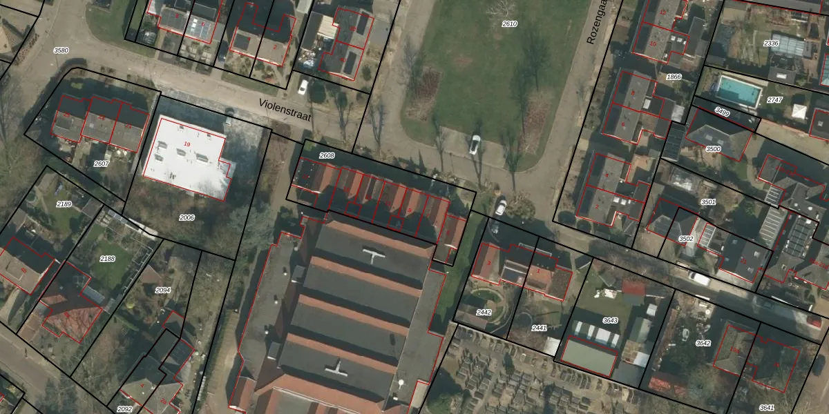 Het perceel waarop Violenstraat 9 staat heeft een oppervlakte van 661 m². Dit is een groot perceel. De perceeloppervlakte wordt geregistreerd door het Kadaster. Gedetailleerde informatie over de maten van dit perceel kunt u vinden in het rapport Kadastrale kaart met maatvoering van Violenstraat 9.