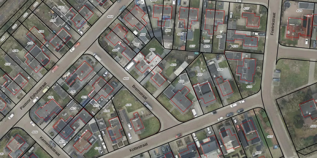 Het perceel waarop Bremstraat 4 staat heeft een oppervlakte van 505 m². Dit is een groot perceel. De perceeloppervlakte wordt geregistreerd door het Kadaster. Gedetailleerde informatie over de maten van dit perceel kunt u vinden in het rapport Kadastrale kaart met maatvoering van Bremstraat 4.