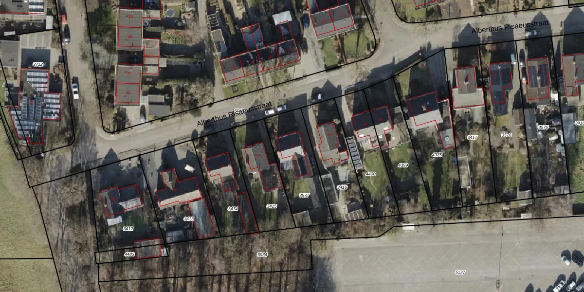 Het perceel waarop Alberthus Risaeusstraat 12 staat heeft een oppervlakte van 518 m². Dit is een groot perceel. De perceeloppervlakte wordt geregistreerd door het Kadaster. Gedetailleerde informatie over de maten van dit perceel kunt u vinden in het rapport Kadastrale kaart met maatvoering van Alberthus Risaeusstraat 12.