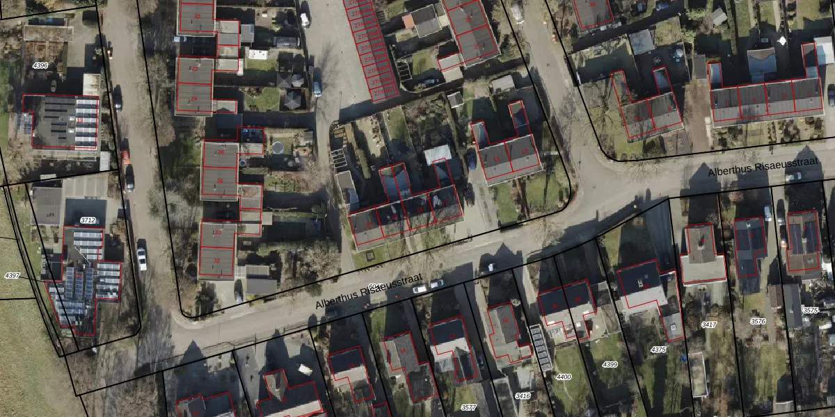 Het perceel waarop Alberthus Risaeusstraat 19 staat heeft een oppervlakte van 1,3 ha. Dit is een zeer groot perceel. De perceeloppervlakte wordt geregistreerd door het Kadaster. Gedetailleerde informatie over de maten van dit perceel kunt u vinden in het rapport Kadastrale kaart met maatvoering van Alberthus Risaeusstraat 19.