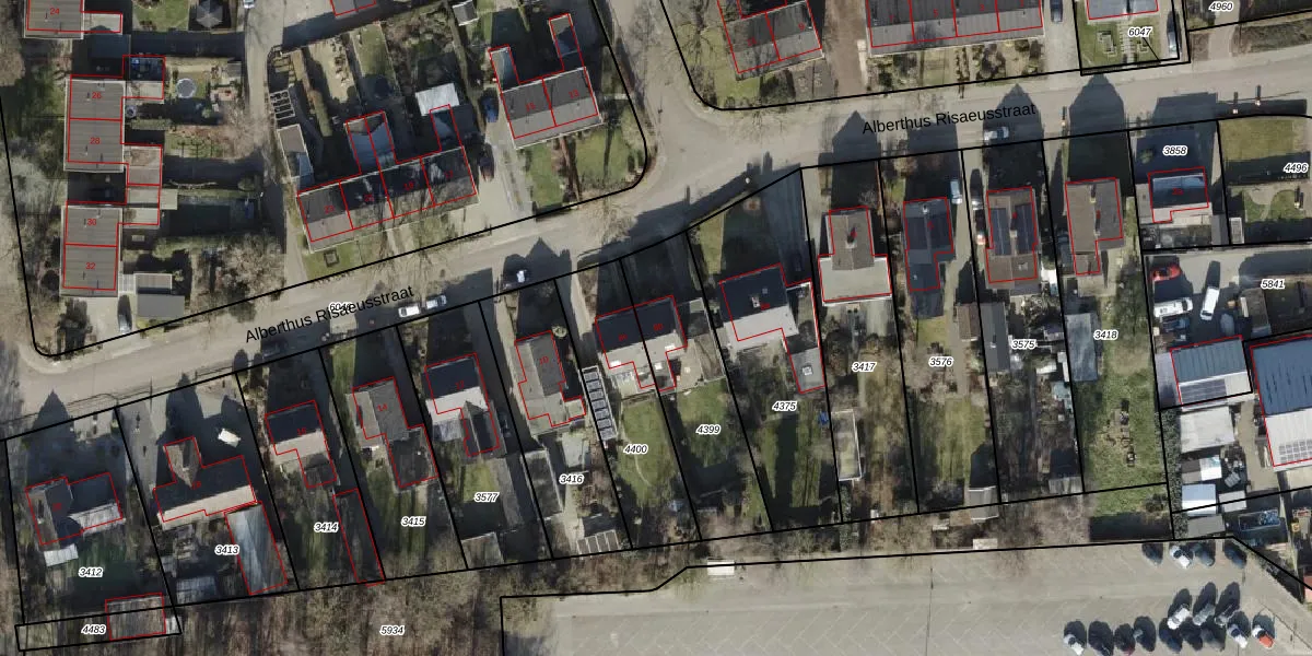 Het perceel waarop Alberthus Risaeusstraat 8-b staat heeft een oppervlakte van 493 m². Dit is een groot perceel. De perceeloppervlakte wordt geregistreerd door het Kadaster. Gedetailleerde informatie over de maten van dit perceel kunt u vinden in het rapport Kadastrale kaart met maatvoering van Alberthus Risaeusstraat 8-b.