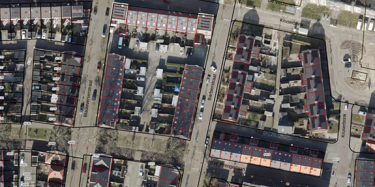 Het perceel waarop Barbierstraat 24 staat heeft een oppervlakte van 3542 m². Dit is een zeer groot perceel. De perceeloppervlakte wordt geregistreerd door het Kadaster. Gedetailleerde informatie over de maten van dit perceel kunt u vinden in het rapport Kadastrale kaart met maatvoering van Barbierstraat 24.