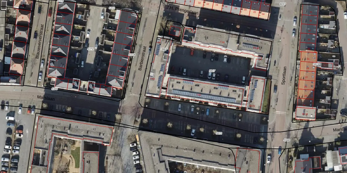 Het perceel waarop Barbierstraat 29 staat heeft een oppervlakte van 2802 m². Dit is een zeer groot perceel. De perceeloppervlakte wordt geregistreerd door het Kadaster. Gedetailleerde informatie over de maten van dit perceel kunt u vinden in het rapport Kadastrale kaart met maatvoering van Barbierstraat 29.