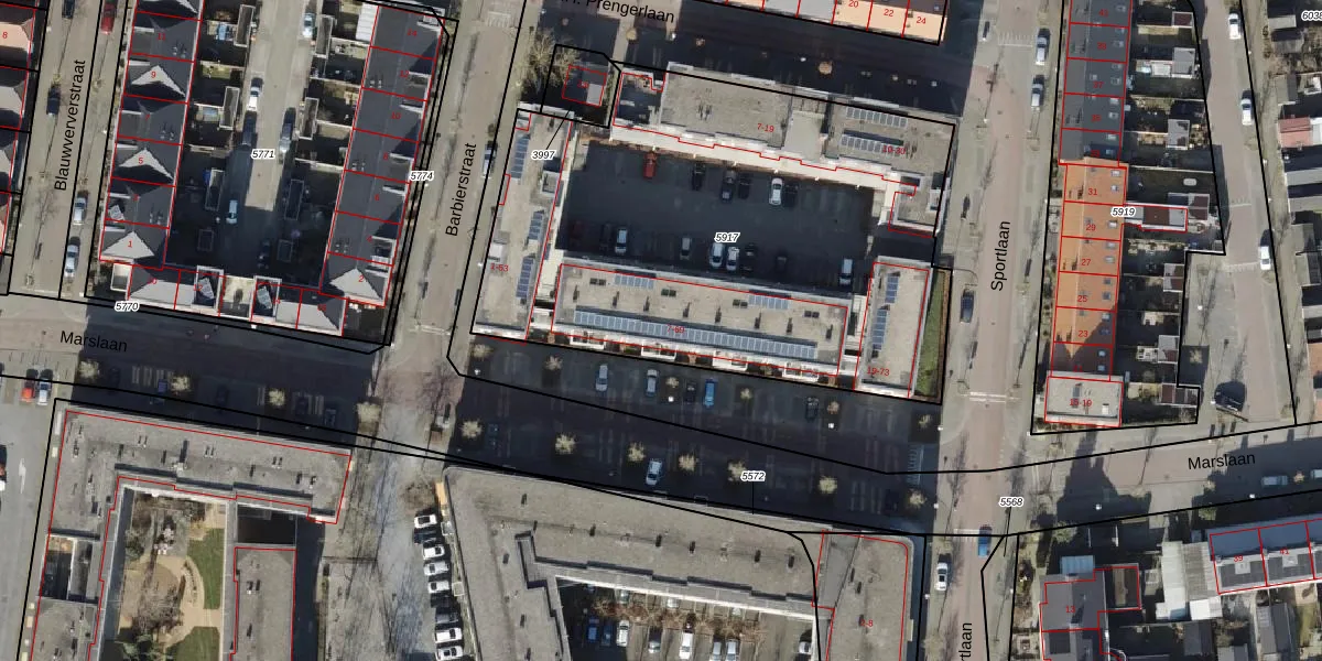 Het perceel waarop Barbierstraat 61 staat heeft een oppervlakte van 2802 m². Dit is een zeer groot perceel. De perceeloppervlakte wordt geregistreerd door het Kadaster. Gedetailleerde informatie over de maten van dit perceel kunt u vinden in het rapport Kadastrale kaart met maatvoering van Barbierstraat 61.