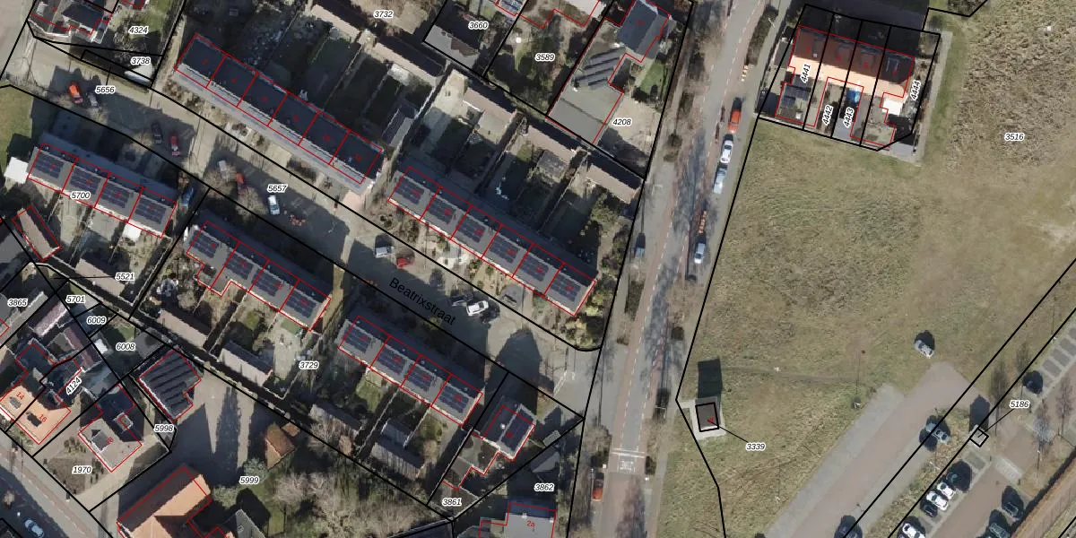 Het perceel waarop Beatrixstraat 22 staat heeft een oppervlakte van 4815 m². Dit is een zeer groot perceel. De perceeloppervlakte wordt geregistreerd door het Kadaster. Gedetailleerde informatie over de maten van dit perceel kunt u vinden in het rapport Kadastrale kaart met maatvoering van Beatrixstraat 22.