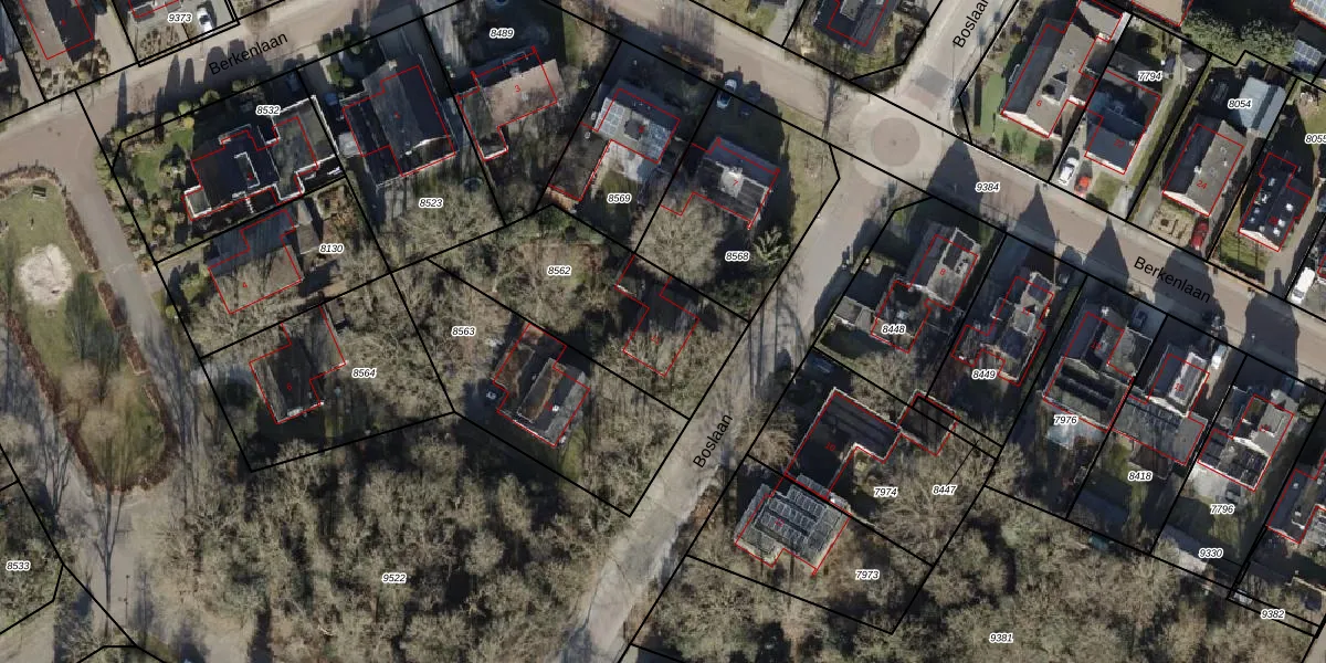 Gebruik de zoekbalk of klik op een perceel voor informatie over de adressen binnen dit perceel.