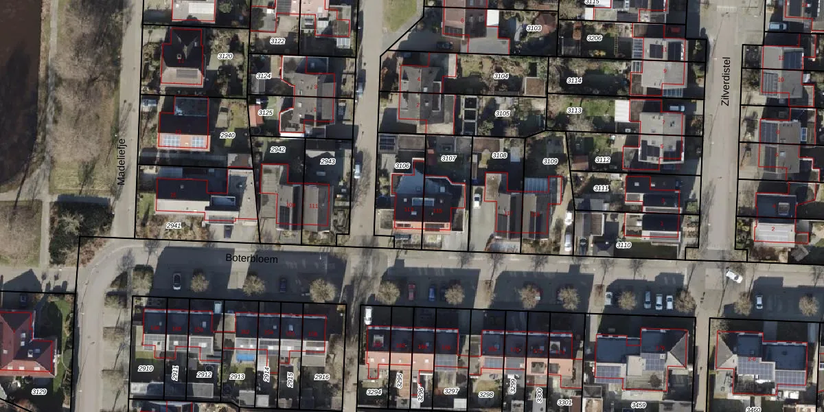 Gebruik de zoekbalk of klik op een perceel voor informatie over de adressen binnen dit perceel.