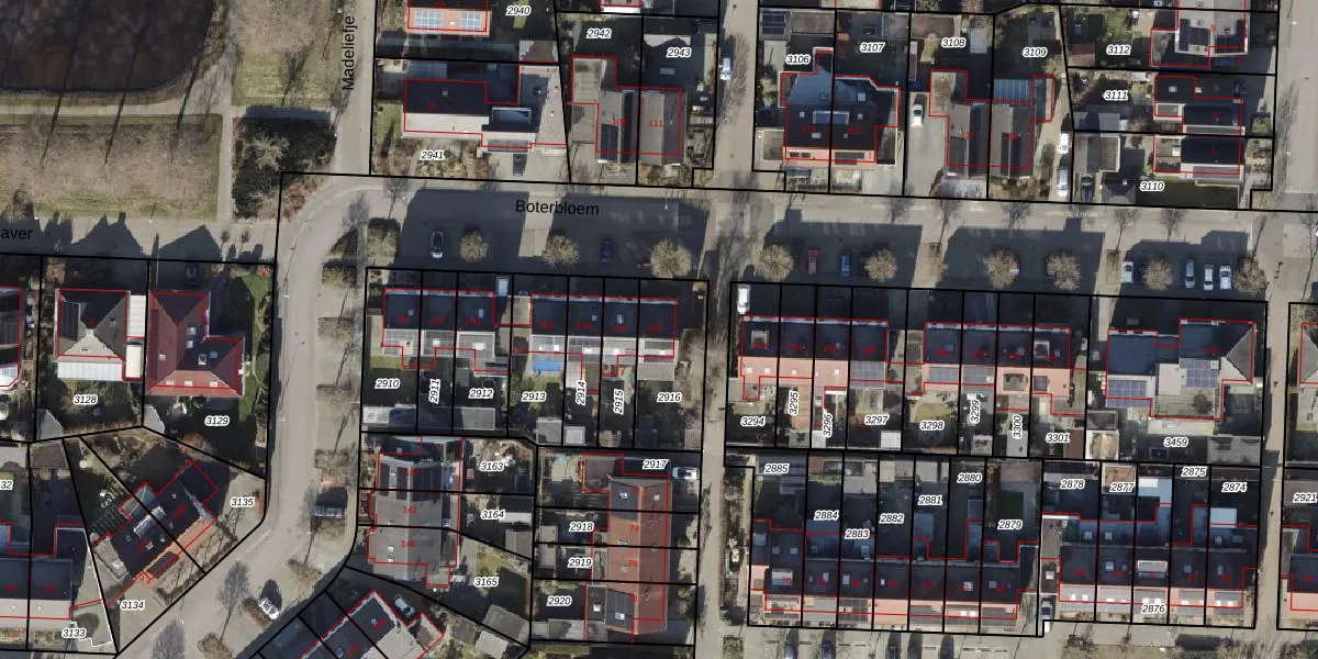 Het perceel waarop Boterbloem 158 staat heeft een oppervlakte van 271 m². Dit is een middelgroot perceel. De perceeloppervlakte wordt geregistreerd door het Kadaster. Gedetailleerde informatie over de maten van dit perceel kunt u vinden in het rapport Kadastrale kaart met maatvoering van Boterbloem 158.