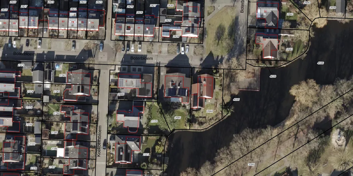 Het perceel waarop Boterbloem 37 staat heeft een oppervlakte van 615 m². Dit is een groot perceel. De perceeloppervlakte wordt geregistreerd door het Kadaster. Gedetailleerde informatie over de maten van dit perceel kunt u vinden in het rapport Kadastrale kaart met maatvoering van Boterbloem 37.