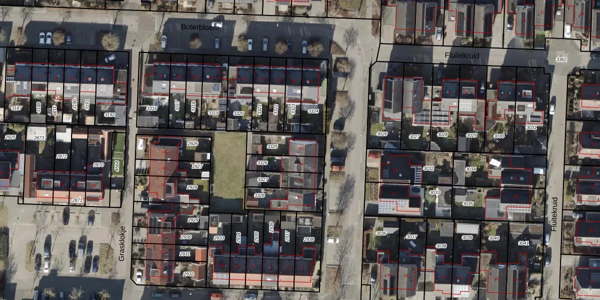 Gebruik de zoekbalk of klik op een perceel voor informatie over de adressen binnen dit perceel.