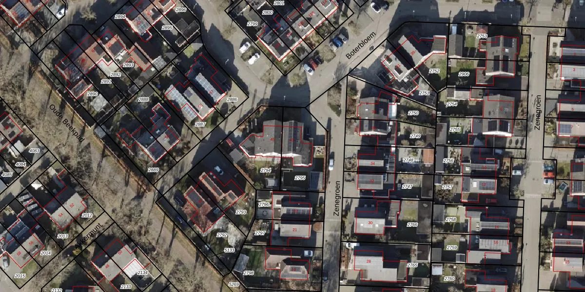 Het perceel waarop Boterbloem 43 staat heeft een oppervlakte van 412 m². Dit is een groot perceel. De perceeloppervlakte wordt geregistreerd door het Kadaster. Gedetailleerde informatie over de maten van dit perceel kunt u vinden in het rapport Kadastrale kaart met maatvoering van Boterbloem 43.