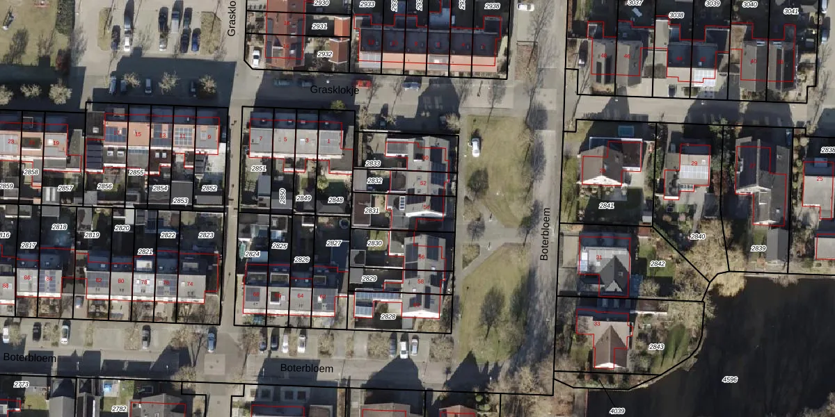 Gebruik de zoekbalk of klik op een perceel voor informatie over de adressen binnen dit perceel.