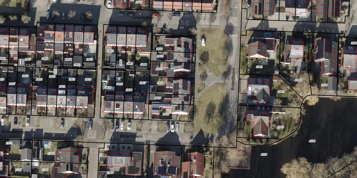 Het perceel waarop Boterbloem 56 staat heeft een oppervlakte van 233 m². Dit is een middelgroot perceel. De perceeloppervlakte wordt geregistreerd door het Kadaster. Gedetailleerde informatie over de maten van dit perceel kunt u vinden in het rapport Kadastrale kaart met maatvoering van Boterbloem 56.