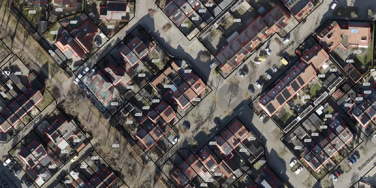 Gebruik de zoekbalk of klik op een perceel voor informatie over de adressen binnen dit perceel.