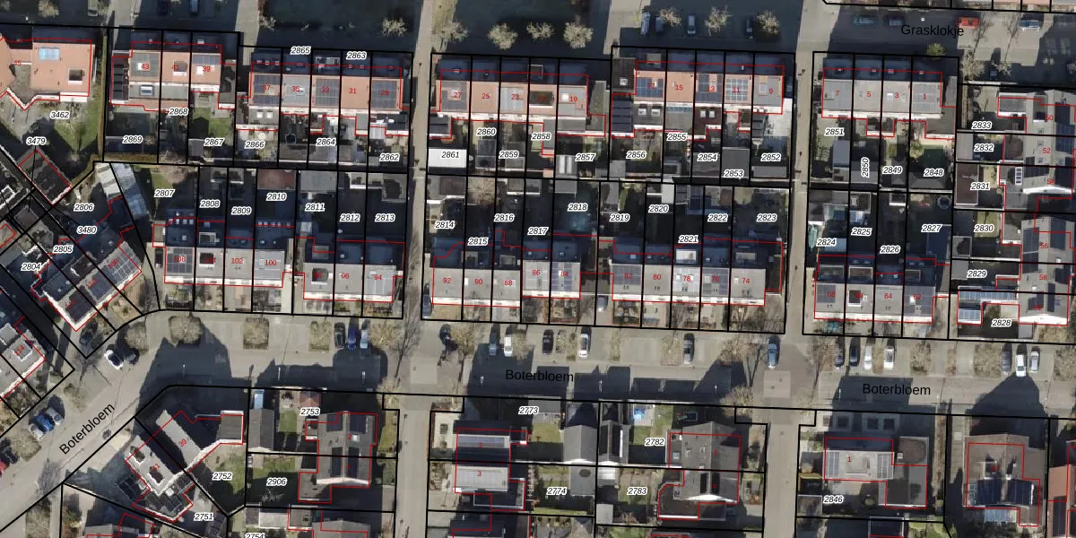 Het perceel waarop Boterbloem 86 staat heeft een oppervlakte van 146 m². Dit is een middelgroot perceel. De perceeloppervlakte wordt geregistreerd door het Kadaster. Gedetailleerde informatie over de maten van dit perceel kunt u vinden in het rapport Kadastrale kaart met maatvoering van Boterbloem 86.