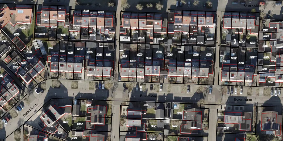 Het perceel waarop Boterbloem 88 staat heeft een oppervlakte van 146 m². Dit is een middelgroot perceel. De perceeloppervlakte wordt geregistreerd door het Kadaster. Gedetailleerde informatie over de maten van dit perceel kunt u vinden in het rapport Kadastrale kaart met maatvoering van Boterbloem 88.